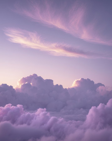 AI Generated. Serene Purple Cloudscape With a Heavenly Glow