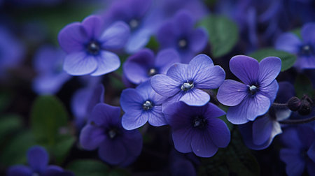 Close-up of vibrant violet flowers with detailed petals and a stunning deep purple hue.