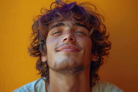 Depicting a young man with expression on yellow background, high quality, high resolution
