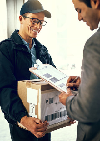 Please sign if youre happy with your order. Closeup shot of an unrecognisable man signing for his delivery from the courier.