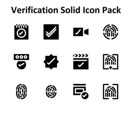 This icon set includes 12 Filled-style icons representing Verification. Great for mobile, web, or app UI.