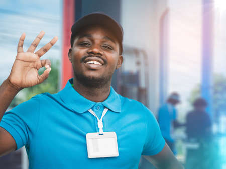 Uniform african man gas station worker refueling a car. Gas station worker filling up fuel into car with smile