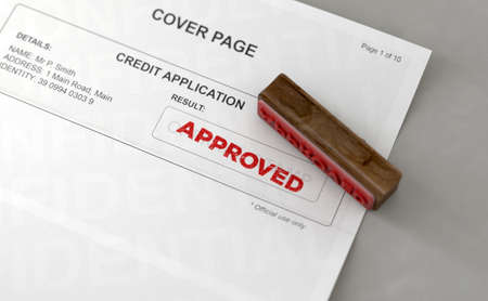 Document that has been stamped printed on Approved in large diagonal red text and rubber stamp, Business credit concept