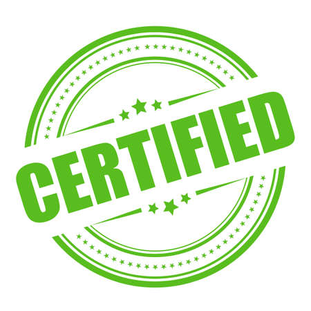 letters of the alphabet with the word CERTIFIED and a stamp. Standard certification, accurate selection, production standards and good quality.