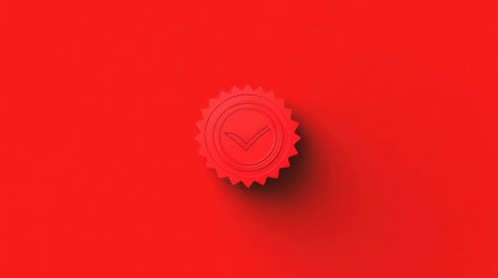 This image features a striking red wax seal centered on a matching bold red backdrop, highlighting a sleek emblem symbolizing authenticity and quality.