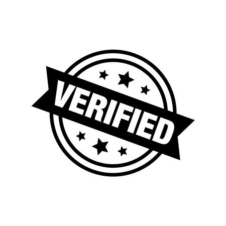 Verified stamp symbol, label sticker sign button, text banner vector illustration.
