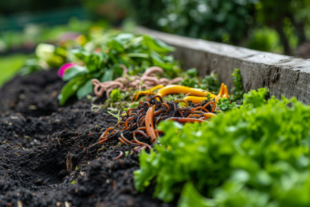 Worms thriving in rich soil, enhancing garden health during warm spring afternoon