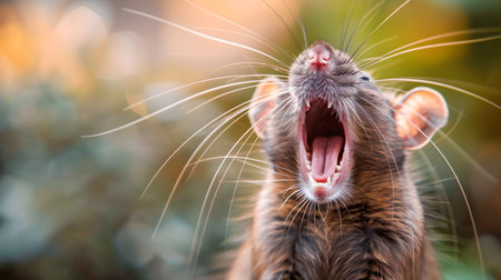 Closeup of a Yawning Rat with Charming Facial Expression Revealing its Teeth and Whiskers in a Cute and Funny Manner