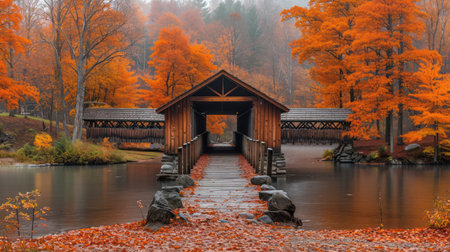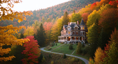 Breathtaking autumn landscape with vibrant trees, colorful leaves, and tranquil nature