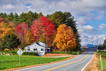 Countryside at sunny autumn day in New Hampshire, USA