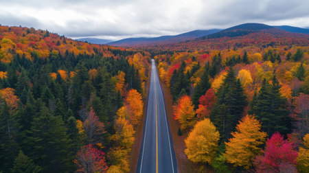 Highway at sunny autumn day in New Hampshire, USA