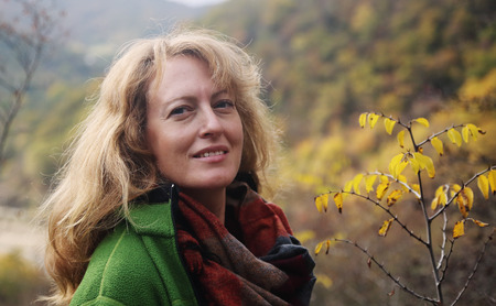 Outdoor portrait of happy 40 years old woman