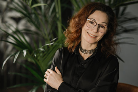 Portrait of business lady on background of green plant in office