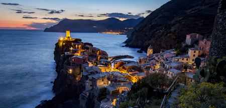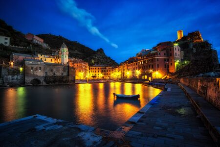Vernazza in Cinque Terre, Italy at night. Popular tourist destination in Liguria coast.