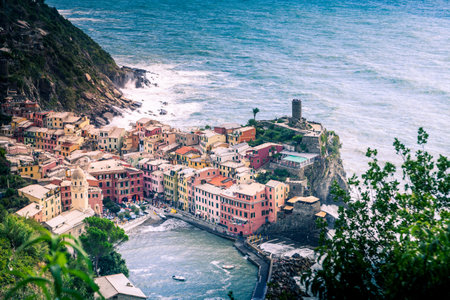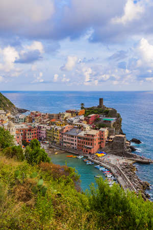 View over the beautiful seaside town of Vernazza in the Cinque Terre, Italy