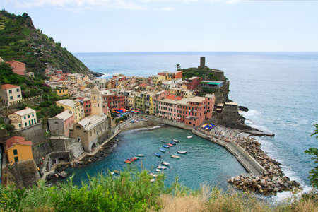 Vernazza, Cinque Terre, Italy. August 8, 2012. View of Vernazza fishing village in summer.