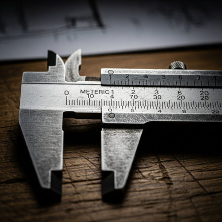 Image shows a close-up of a vernier caliper used for precise measurements in engineering