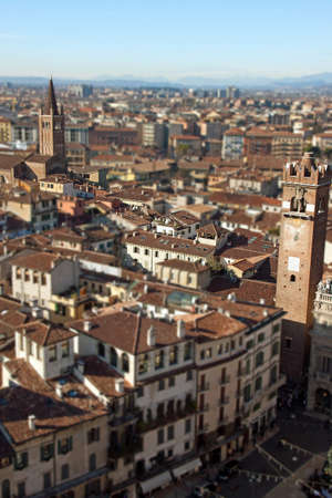 View over Piazza delle Erbe (Market's square), Verona, Italy. Tilt-shift effect applied