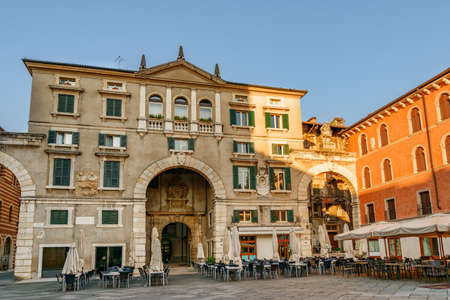 View of Piazza dei Signori in Verona, Italy. Verona is a popular tourist destination of Europe.