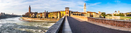 Amazing panorama of the Adige River running along ancient buildings of Verona, Italy