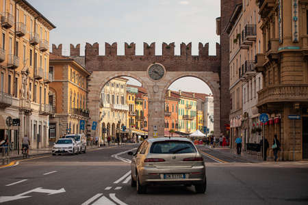 VERONA, ITALY 10 SEPTEMBER 2020: Portoni della Bra view with city life in Verona in Italy