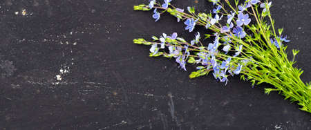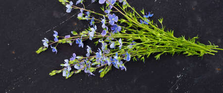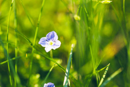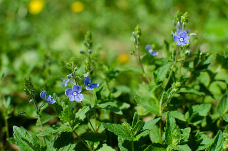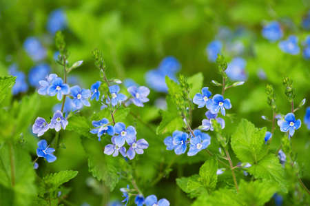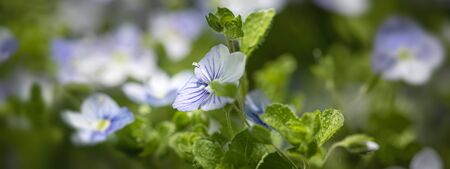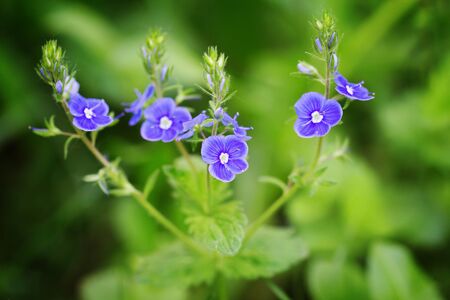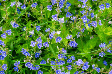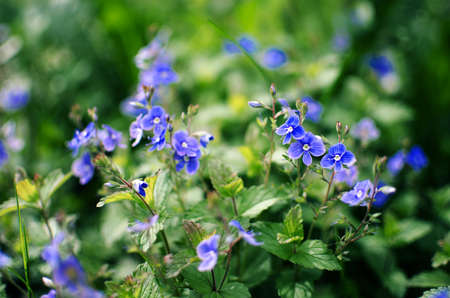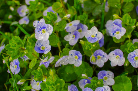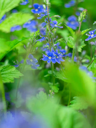 Little spring blue Veronica flowers bloom outdoors on the lawn