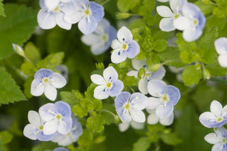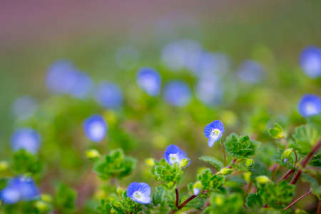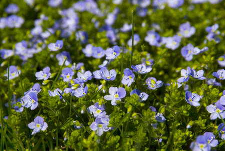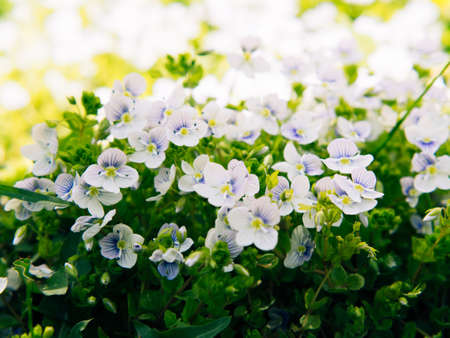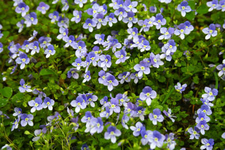 beautiful background with wild flowers ,Veronica filiformis (Slender speedwell) in natural habitat.