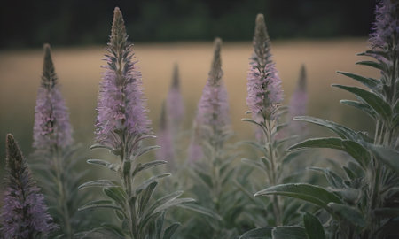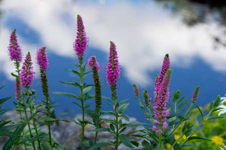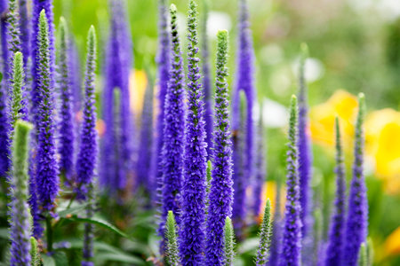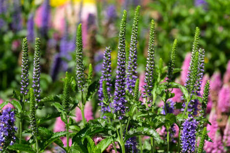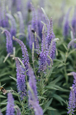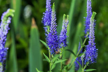 Beautiful veronica blooming in english cottage garden. Close up of purple veronica spicata flower. Floral wallpaper. Homestead lifestyle and wild natural garden