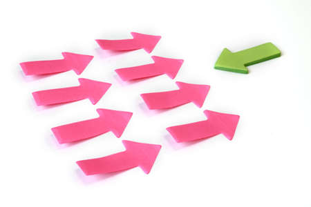 many paper arrows in one direction and one arrow in opposite