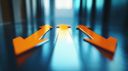 Vibrant directional arrows against dark backdrop representing business choices and decisions