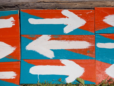 directional arrows on a colorful textured wall. urban navigation concept
