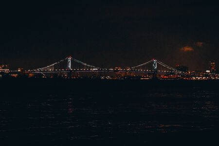Verezano Bridge spanning the Hudson River at night in New York City.