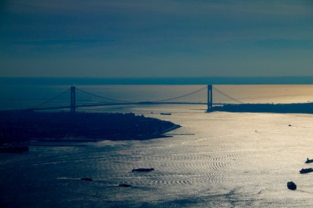 Aerial view of the Verrazano Narrows Bridge in Brooklyn, NY
