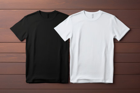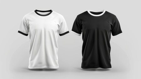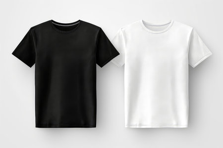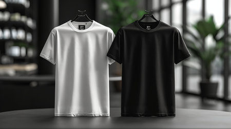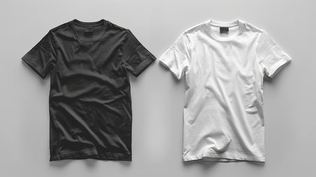 Simple and stylish black and white t-shirts displayed on a light gray background, showcasing minimalist fashion for casual wear or design purposes.