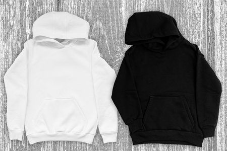 White and black hoodie blank mockup, copy space.
