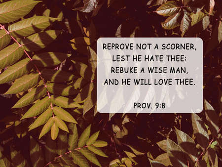 Bible quotes autumn leaves nature background. Card text for believers. Inspirational Christian praying verse. Reprove not a scorner, lest he hate thee: rebuke a wise man, and he will love thee.