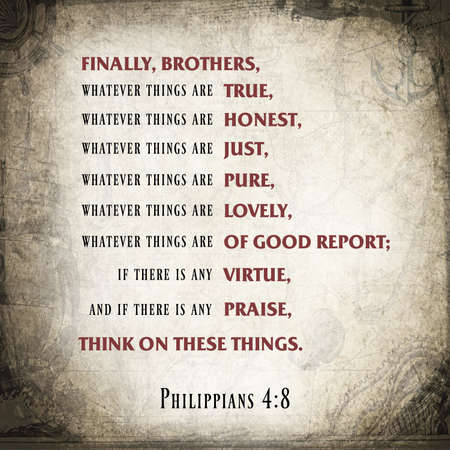 Finally, brothers, whatever things are true, whatever things are honest, whatever things are just, whatever things are pure, whatever things are lovely, whatever things are of good report; if there is any virtue, and if there is any praise, think on these things. Philippians 4:8