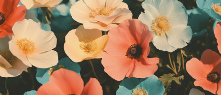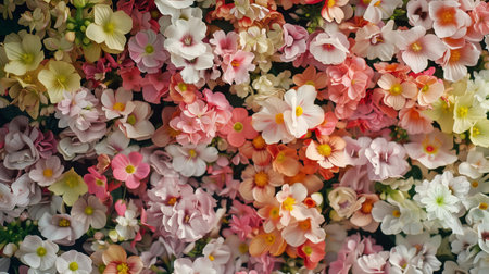Colorful arrangement of cute flowers with soft pastel colors and simple shapes