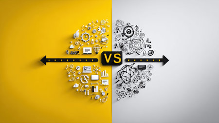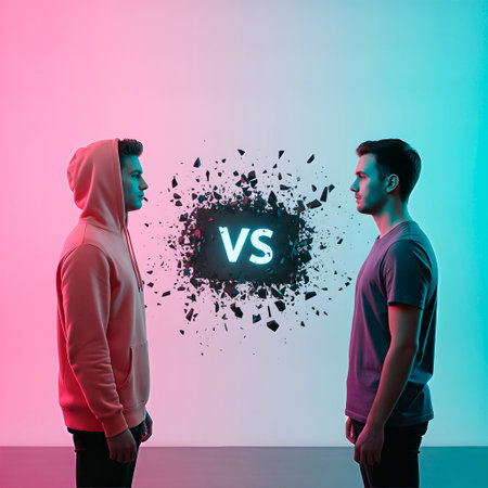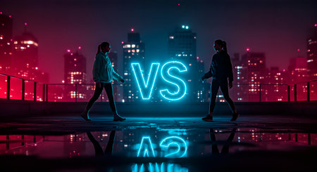 A striking visual representation of the concept of competition, featuring a bold VS sign that symbolizes comparison or debate in a contemporary setting.