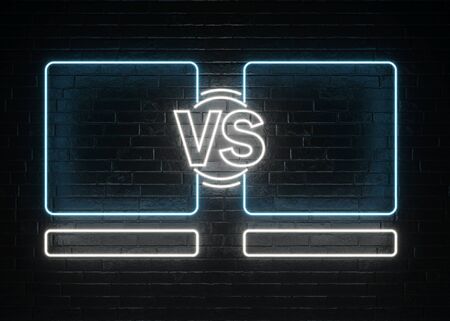 Blue neon versus logo vs letters for sports and fight competition. Battle vs match, game concept competitive vs. Vector illustration