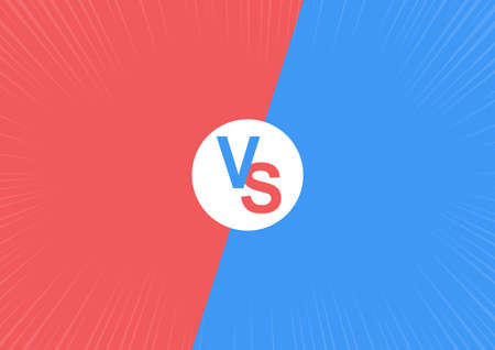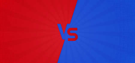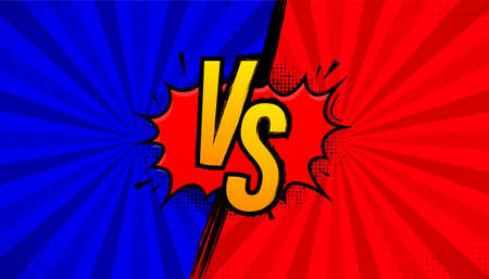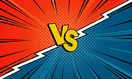 Vs cartoon background. Comic versus duel battle or team challenge concept with radial rays halftone effects lightning. Blue Vs Red vector Illustration design
