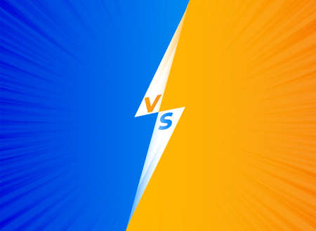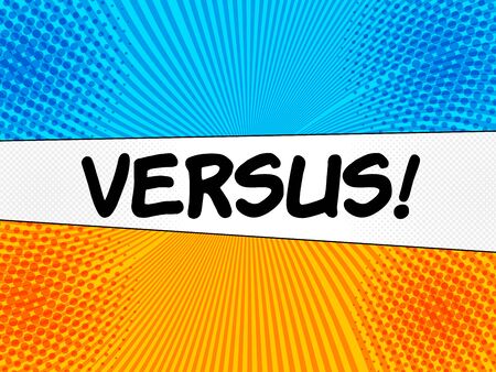 Comic competition and challenge concept with black Versus wording blue and orange radial halftone effects. Vector illustration