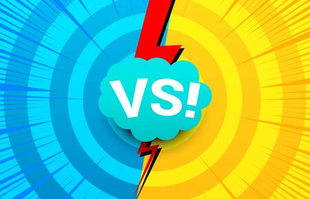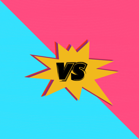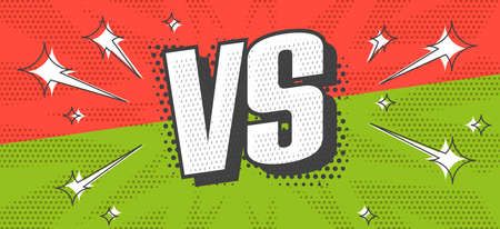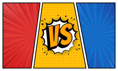VS screen. Versus sign on divided background. Pop art retro style. Decorative battle cover with lettering. Template for banner, poster, brochure, card. Vector illustration.