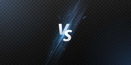 Design screen of versus. Glowing letters VS. Template for battle headline. Banner for competition of boxing, martial arts, mma, fighter match, soccer, football. Vector illustration,