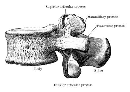 This illustration represents Third Thoracic Vertebra Viewed from Side, vintage line drawing or engraving illustration.