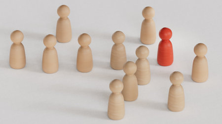 Unique Individual Standing Out Among Crowd of Miniature Figures in Colorful Background