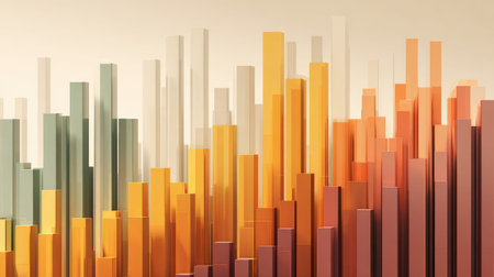 This abstract visualization features colorful vertical bars representing data trends in vibrant orange, yellow, green, and white tones, ideal for business presentations.