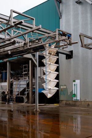 Fresh vegetables processing equipment after harvesting, storage, sorting, washing, cutting, packing, agriculture in the Netherlands
