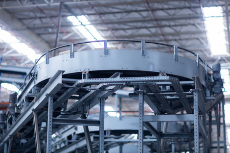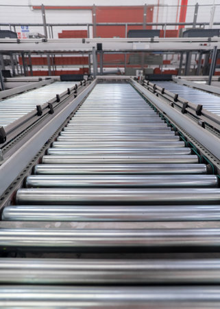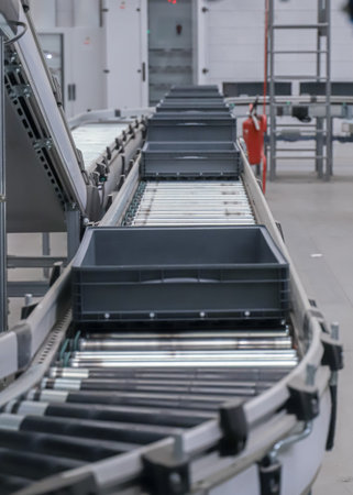 Close-up view of a modern conveyor belt system in an industrial facility, highlighting precision and streamlined design.