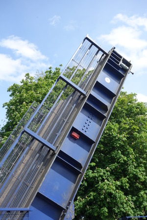 Open elevator lift shaft. Modern architecture with transparent ceiling. Shopping mall or business center. Maintenance repair and service